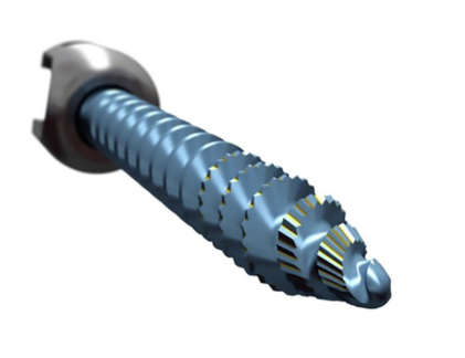 Diseño del tornillo con tecnología True-Tip y dientes dentados punta de serración y espiras cortantes que facilita su rápida inserción.