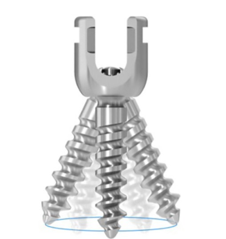 Los tornillos Everest son de tulipa de aleación en Ti y CroCobalto minimizando el biselado y aumentando el rango mecánico. El diseño patentado, poliaxial y troncocónico del tornillo de doble paso ofrece un radio de movimiento de 70° otorgando mayor flexibilidad para la colocación del tornillo.